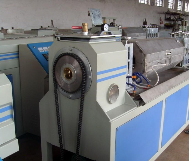 该机的螺杆采用屏障式结构,机筒拥有的沟槽式结构,以便达到良好的塑化和混炼效果。HDPE(PP、ABS)大口径管材则采用篮式模具的特殊设计,降低溶解温度和主机压力,达到很好的混合效果,从而使产量得到保证。