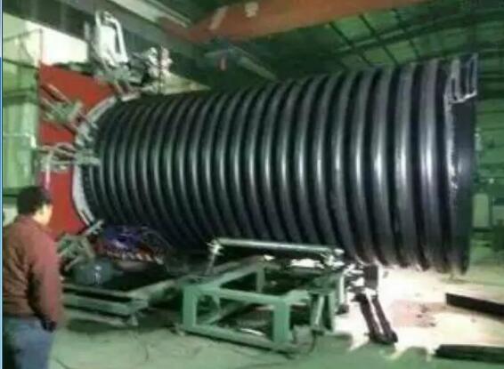 3. 热态缠绕成型熔缝质量高,从挤塑机口模挤出的处于熔融状态的平料带和包覆料带,按预定的位置均匀的缠绕在加热的滚筒模具上,保证了结构壁管熔接缝质量,管材采用风冷却,材料冷却均匀。特别是结构设计中平料带的熔接缝被料带包覆支撑管所覆盖,提高了制品整体的抗外压能力。 管材的水平层与加强结构层在熔融状态下熔接,熔缝质量高,没有内应力,管材的整体强度高。