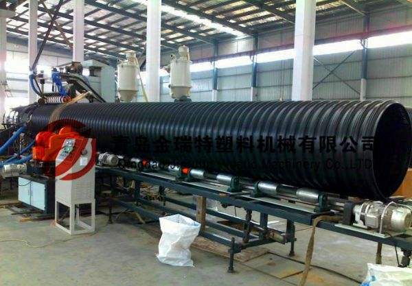 HDPE双壁波纹管设备是以高密度聚乙烯为主要原料,分别由内、外挤出机共同挤出,一次成型,内壁平滑,外壁呈梯形波纹状,内外壁之间有夹壁空心层的塑料管材。双壁波纹管设备产品具有环刚度高、强度大、重量轻、隔音减震,较高的抗紫外线稳定性,使用寿命长,弯曲性好,耐压,抗冲击强度高等多种优点。可敷设在地质较差的路段,而且密封性好,施工快捷。