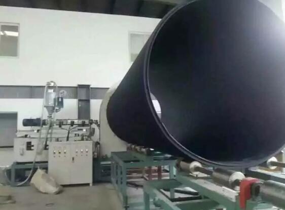 3. 热态缠绕成型熔缝质量高,从挤塑机口模挤出的处于熔融状态的平料带和包覆料带,按预定的位置均匀的缠绕在加热的滚筒模具上,保证了结构壁管熔接缝质量,管材采用风冷却,材料冷却均匀。特别是结构设计中平料带的熔接缝被料带包覆支撑管所覆盖,提高了制品整体的抗外压能力。 管材的水平层与加强结构层在熔融状态下熔接,熔缝质量高,没有内应力,管材的整体强度高。